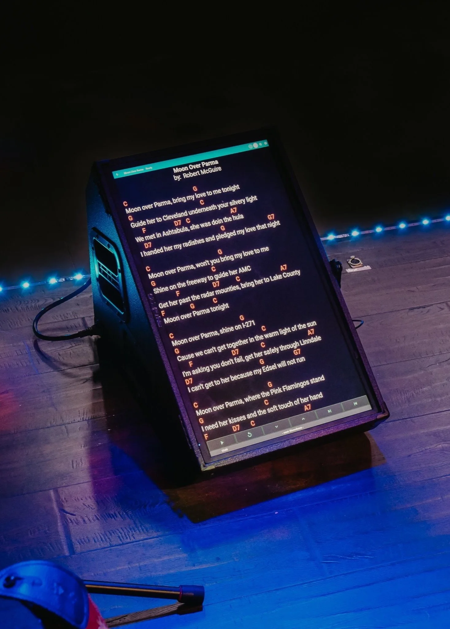 Take advantage of our lyric monitors! Using an industry standard file format (ChordPro) helps to standardize the process of importing everyone’s lyrics.